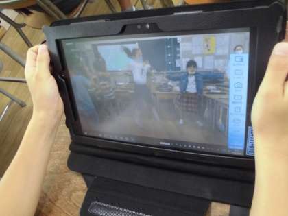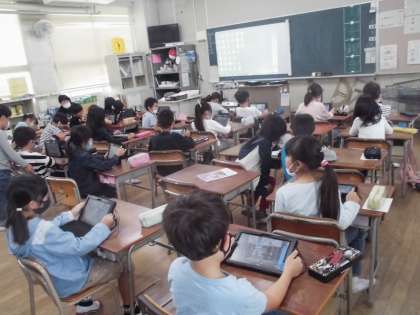 2年生は「運動発表会」で踊るダンスをタブレットで撮影し、自分の踊りの動画を見て修正するところを確認しました。自分の踊りを見ることはなかなか機会がなく、よい学習になりました。当日はしっかり修正して自信をもって踊ってほしいと願っています。