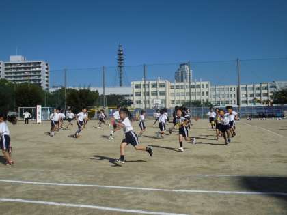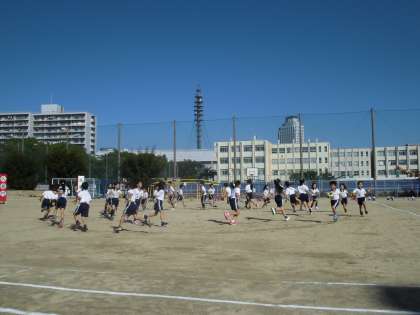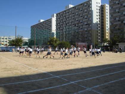 最後は円に沿って走りまわり、先頭の児童から退場していきます。円から退場門に向かうフィナーレは見事でした。