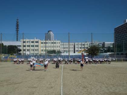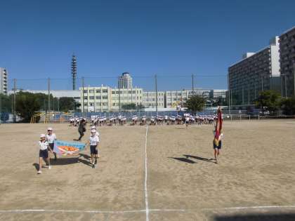 「運動発表会」の中学年の部の様子を紹介していきます。まずは入場、ラジオ体操です。