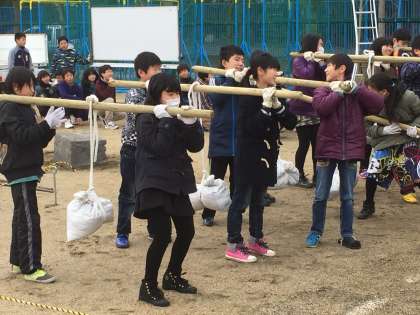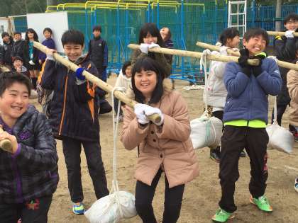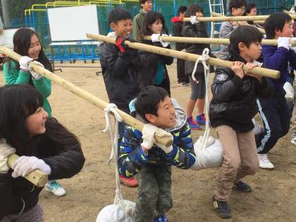 てんびん棒で石を運ぶ方法も知りました。でも、棒の真ん中から石を少しずらすと、片方の重量が増して驚きました。