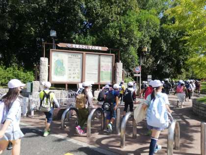 3年生4年生は秋の遠足で大泉緑地に行きました。春の遠足は中止だったので今年度はじめての遠足です。大泉緑地に着いて遊具広場までひたすら歩きました。