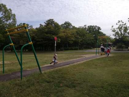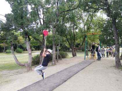 遊具広場に移動です。待ってましたと遊具に夢中です。
