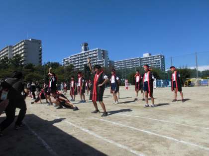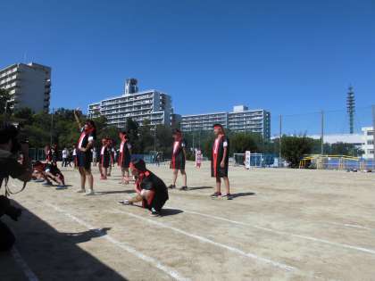 踊りが終わっても続きます。列ごとに前に来て自分の一番好きなポーズを決めて静止です。6年生はきっと大きな思い出になるでしょう。5年生も6年生と一緒に踊りこんで頼もしい姿を見せてくれました。拍手拍手です。5年生6年生みんなで「運動発表会」のフィナーレを飾ってくれました。