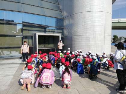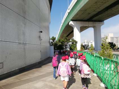 1年生2年生は秋の遠足で八幡屋公園に行きました。春の遠足は中止だったので今年度はじめての遠足です。朝潮橋駅に着いて大阪プール前から芝生広場に行きます。