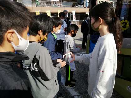名阪国道の「名阪上野ドライブイン」で休憩です。道路はすいており、順調です。バスの乗降時には手指の消毒です。車内ではアニメの映画を観ています。とても静かです。