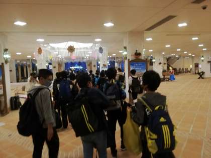 17時15分にホテルに着きました。みんな元気です。検温と消毒をして入ります。水族館の写真の続きはのちほどアップします。