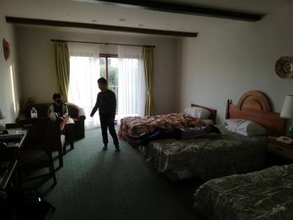 10月27日(火)、修学旅行の2日目をむかえました。41名全員の検温の結果、みんな元気です。洗面や着替えなど、朝の会に備えています。天気は晴れです。