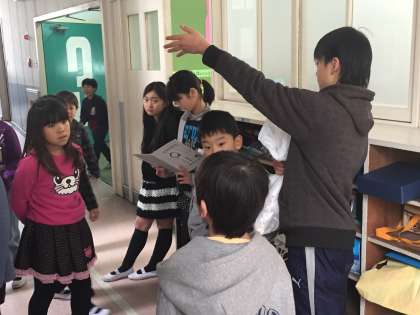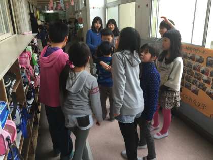 1年1組が学級休業になっていたので、たてわり掃除は一部で1年生がいない状態でした。今日は、休業が解除されたので1年生が加わりました。全員がそろって、楽しそうにそうじの反省会をしていました。