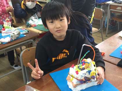 デコレーションがいっぱいついた、ぼくの自慢のケーキ。
