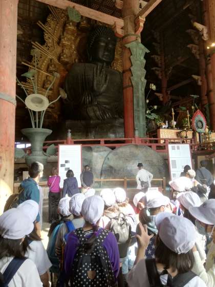 東大寺大仏殿に入り、大仏様を見ます。その大きさに驚いていました。