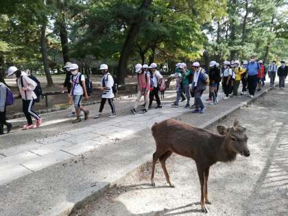 鹿さんにお別れをして、帰路につきました。天気にも恵まれ、電車内などのマナーがよく、みんな仲良く過ごして楽しい遠足になりました。