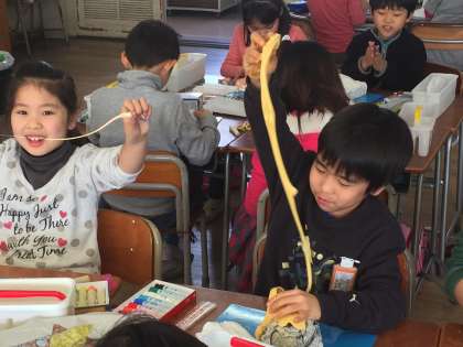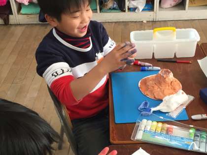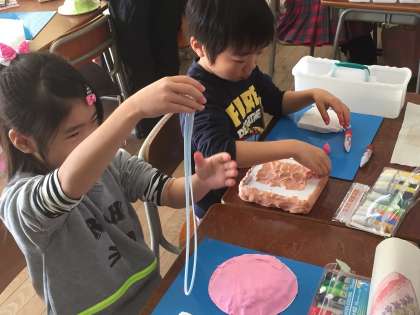 2年2組は、欠席者が増えてきて心配ですが、学校に来ている子どもたちは元気です。作品展にむけて、楽しそうにケーキを作っていました。