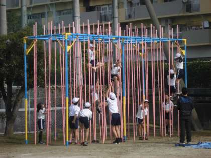 5年生は体育で、鉄棒、うんてい、登り棒に取り組みました。なかなかうまくできなくても最後まで頑張ろうとする気持ちが伝わってきました。
