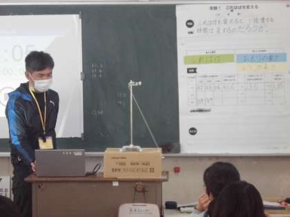 5年生は理科で「ふりこのきまり」を学習しました。ふりこの振る幅をかえて、10往復の時間を計測しました。実験の結果、「ふりこのふり幅を変えても、往復する時間は変わらない」ということが理解できました。計測する子どもたちもふりこをしっかり見て、正確に時間を測っていました。