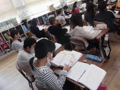 4年生は国語で「ごんぎつね」の学習に取り組んでいます。ずっと4年生の教科書に取り上げられている名作です。物語の最後の場面を思い出される方も多いのではないでしょうか。今日は辞書で意味調べを中心に学習をしました。