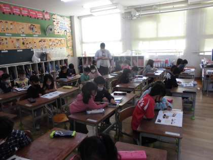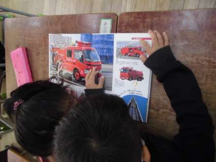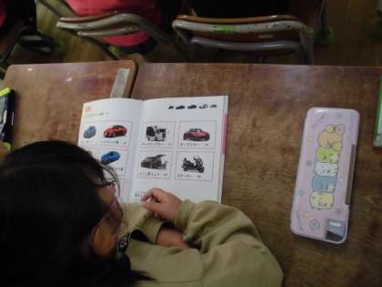 1年生は国語「いろいろなふね」の学習で乗り物について調べました。絵本を開き、自分の調べたい乗り物を熱心に調べていました。