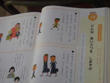 1年生は道徳で「あいさつ」について学習しました。実際の生活の中でどのようなあいさつをしているか思い出させて発表していきました。その後、様々な場面でのあいさつの仕方を教えてもらいました。場に応じたあいさつができるようにこれからも指導していきたいと思います。ご家庭でも見守っていただけると幸いです。