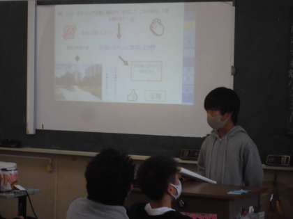 教室では、国語「町の幸福論」の発展学習で自分たちの住む南港の町の未来を考えた「南港幸福論」を考えました。今日はグループごとにその内容を発表していきました。タブレット端末でプレゼンも作ってわかりやすく発表していきました。