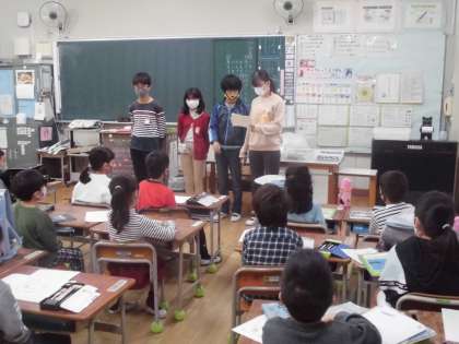 来週の11月24日〜28日に、児童会が「廊下・階段を正しく歩こう」キャンペーンを行います。その取り組みとして20分休みが終わる3分前に児童会の子どもたちが「遊びをやめて歩いて教室に戻りましょう」という内容の放送をします。3時間目が始まるので走って教室に向かう子どもたちが多いので、児童会の子どもたちが取り組み内容を考えました。