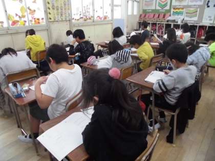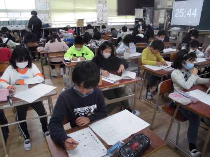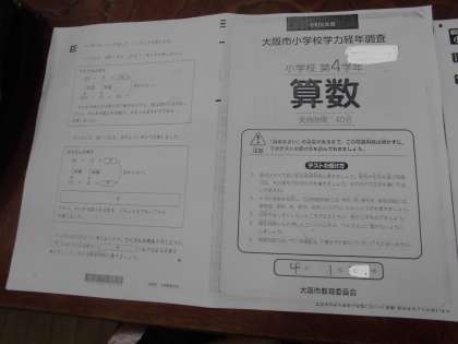 4年生は1月12日と13日に行われる「大阪市学力経年調査」に向けて昨年度実施の問題(過去問題)を解きました。日頃から基礎学力の充実に向けて学習を積み重ねていますが、過去問題を解くことにより子ども自身が問題の傾向を知り、自身の課題をつかむためです。1月の経年調査では力を発揮してほしいと願っています。