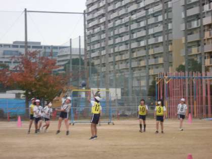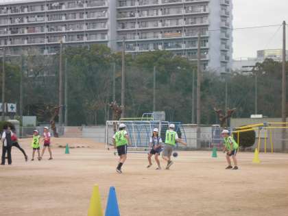 6年生はハンドボールで汗を流しました。だんだんとゲームに慣れ、ゴールの速さも勢いを増し、パスも正確になってきました。