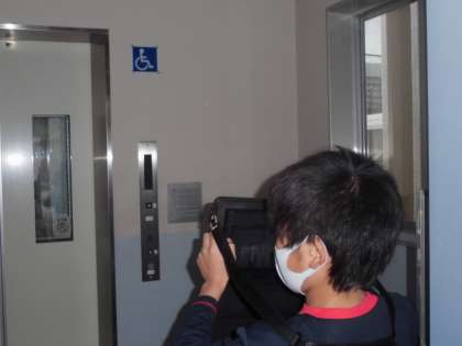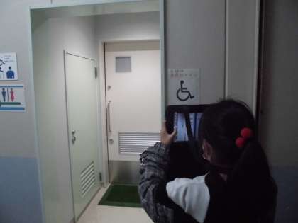 5年生は校内をまわり、バリアフリーになっている場所を探しました。エレベーター、車いす対応の多目的トイレ、玄関のスロープ等、自分たちで見つけて写真に撮っていました。この活動を通して、学校がどのような配慮をしているか考えることができました。