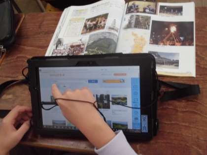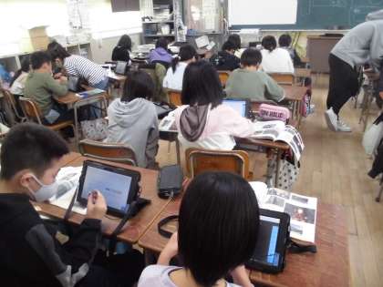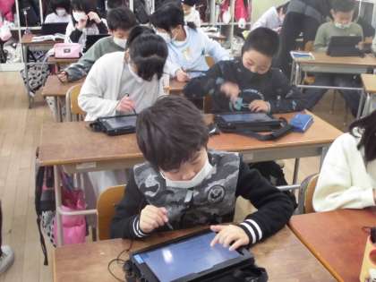 4年生は社会科で大阪について調べてきています。これまでたくさんの情報を調べてきました。今日は調べたことを発表するためにタブレットを使って作業をしていきました。