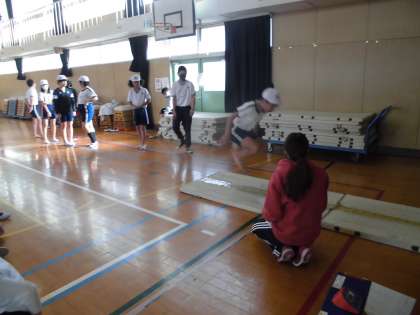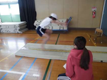 6年生はスポーツテストで幅跳びをしました。さすが6年生。慣れた跳び方でジャンプしていました。このジャンプも小学校では最後です。