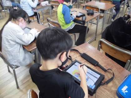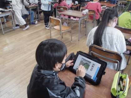 2年生はインターネットで調べ学習をしました。タブレットを使う機会が多く、みんなすっかり慣れた手つきで学習を進めていました。