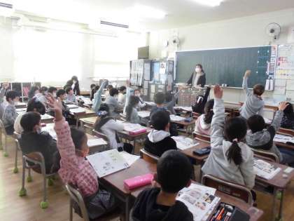 1年生は「じぶんのできることをしよう」の学習をしました。家でしている仕事を発表し合うと「お風呂洗い」「食器片づけ」「家のそうじ」など、いろいろなことが出ました。間もなく冬休みです。大掃除など家の仕事はやることがいっぱいです。この学習をきっかけに、少しでも家のことをしていってほしいと願っています。