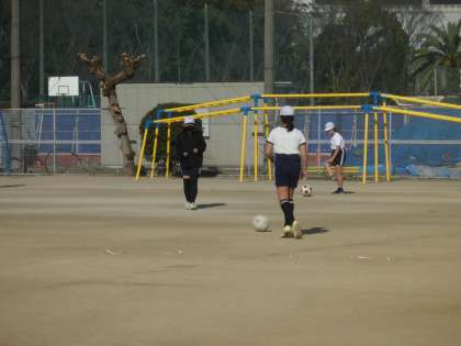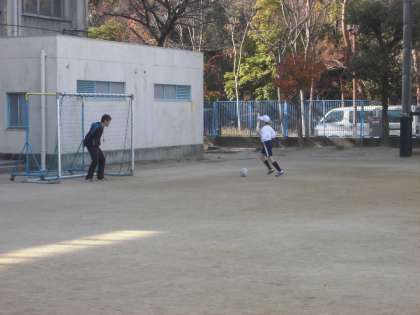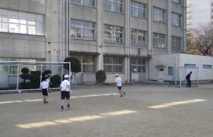 5年生は体育でサッカーに取り組みました。パスをしたり、ゲームをしたりして気持ち良い汗をかきました。