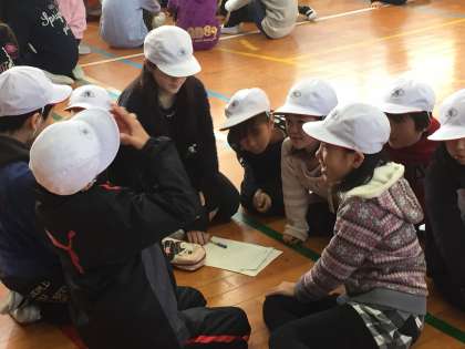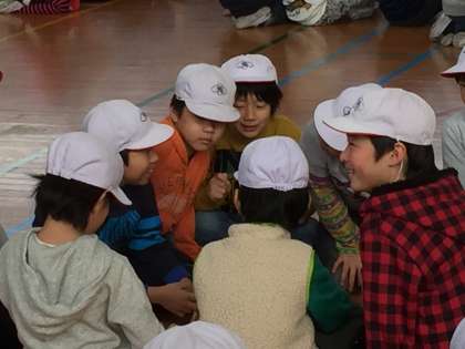 たてわり班でクイズに答えていく集会でした。集会委員会が答えを発表するごとに、歓声とため息がまじりあいました。