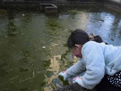 1年生は氷を観察し、手で触っていました。写真のように厚みもあり、子どもたちは氷の冷たさや厚さを体験していました。この池にこの冬は何回氷が張るのでしょうか。