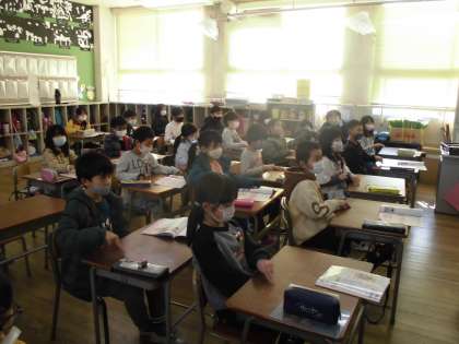 2年生はわらべうたの学習をしました。歌に合わせて手拍子をとったり、手遊びを教えてもらい楽しく活動していました。