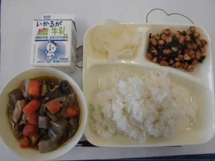 1月21日の給食は「筑前煮」「ひじき豆」「だいこんのゆず風味」です。完全な和食でご飯が進みました。