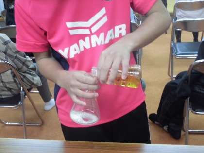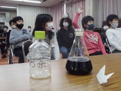 6年生は薬の正しい使い方を学ぶ学校保健委員会「おくすり教室」を行いました。本来であれば地域の薬剤師の先生から教えてもらい、地域からも来賓を招待する予定でしたが、「緊急事態宣言」のため外部からの招へいはできなくなりました。そのため保健の先生が授業を行いました。薬をお茶に混ぜると黒く変化する実験をし、薬は水もしくは白湯で飲まなければならないことを学びました。また、映像を使って危険な薬物を絶対に使ってはいけないことも学びました。最後に授業の感想を発表し合い、薬の正しい使い方を理解していました。