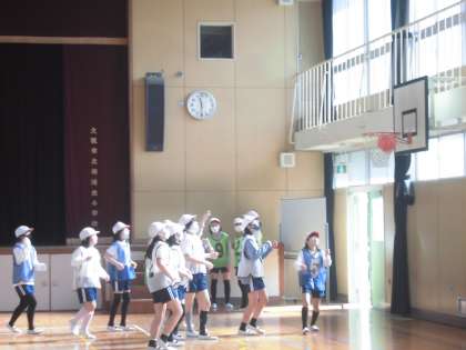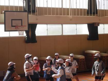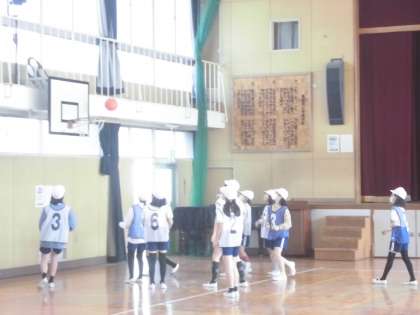 5年生は体育でバスケットボールをしています。パスを正確にメンバーに渡そうと必死でした。ゴールが決まった時は気持ちがいいですね。ゴールを決めた子もチームのメンバーも満面の笑みです。