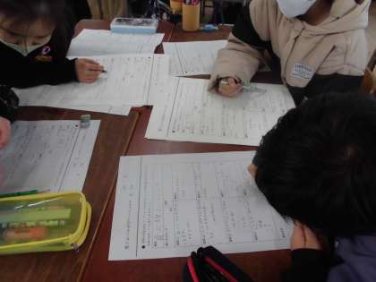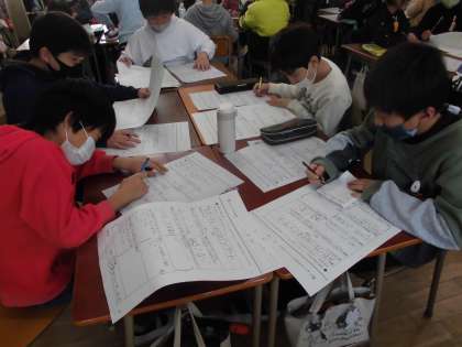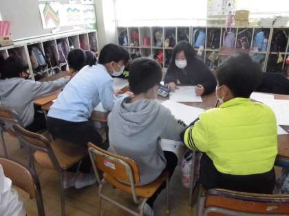 4年生は国語の学習で調べたことをグループのメンバーに報告し合いました。自分の考えだけでなく、友達の調べた内容や考えを共有して学習を深めることができました。