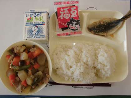 今年の節分は昨日でしたが2月3日の給食は節分行事献立です。節分らしい献立でおいしくいただきました。今の小学生が40歳を過ぎるまで4年ごとに2月2日が節分になります。