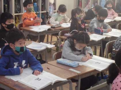 1年生はこの1年間を振り返って、季節ごとに心の残ったことなどを思い出して書いていきました。秋以降の思い出をたくさん書いていました。みんな「春」は入学式と朝顔の種まきしかありませんでした。どうして?…。今年の1年生は「春」は学級休業だったのです。「秋」以降が多いのは遠足などの行事が実施可能になったり、学校生活も軌道に乗ってきたからかもしれません。