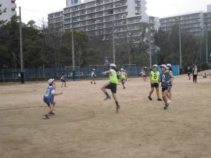 6年生はポートボールゲームをしました。ゲーム前に縄跳びランニングをして体を温めていました。ゴールに投げ込むボールの勢いがとても速くなってきました。