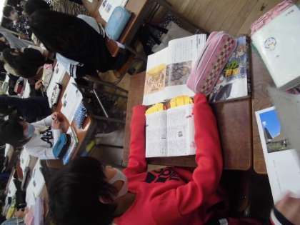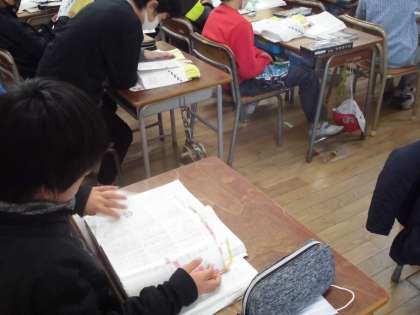 3年生は国語で世界の家についての説明文を学習しています。むずかしい言葉が随所にあるので、自分で確認しながら意味を調べて読んでいました。