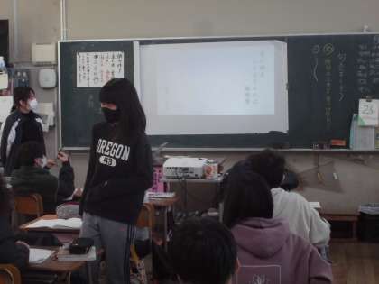 6年生は国語で俳句作りをしました。タブレットに俳句を書き、背面写真をつけて発表していきました。みんなそれぞれ、季節感がはっきりして情景がよくわかる俳句を作っていて聞いていて気持ちがよかったです。