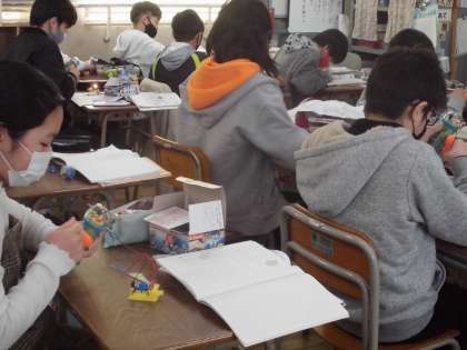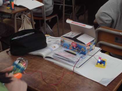 6年生は理科で発電について学習しました。手でハンドルを回して電気を作る実験です。電気の力で音が鳴ったり電球がついたりしてして発電を体で感じることができました。みんな懸命にハンドルを回していました。
