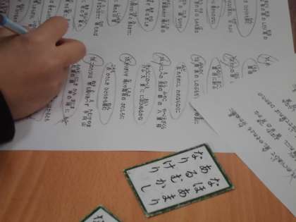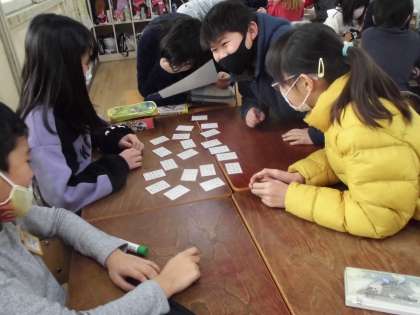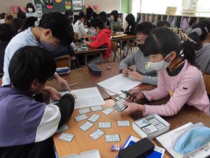 4年生は百人一首を学習しています。今日は札を分類して百人一首大会に向けての準備をしました。