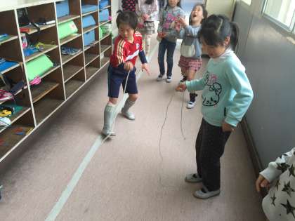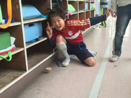 2年生でずっとコマ回しをしている子たちがいます。ずいぶん上達して、手の上に乗せる子もいます。1年生に教えてほしいですね。