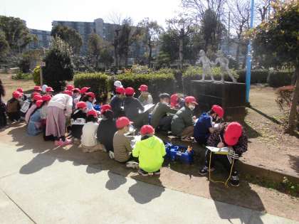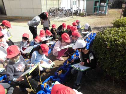 1年生はチューリップの観察です。最近の温かさで芽が伸びてきました。絵と文で観察ノートをかいていました。