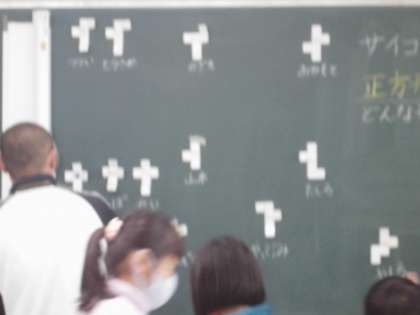 2年生は算数で「箱」について学習しました。今日は正方形からサイコロの形を作りました。