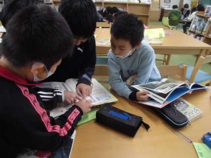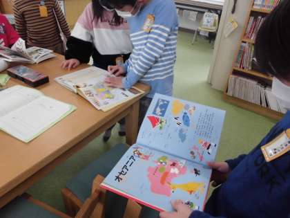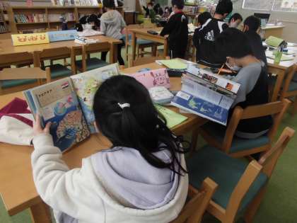 3年生は国語で外国について調べていますが、今日は図書室に行き、外国に関する本を選んで調べていきました。