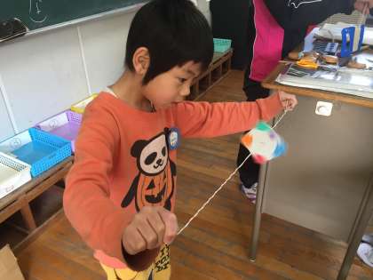 1年生は、手作りおもちゃで楽しんでいました。昔からの遊び、季節にあった遊びなど子どもたちにとっては、遊びは文化です。携帯ゲーム機以外の遊びを、楽しんでほしいですね。